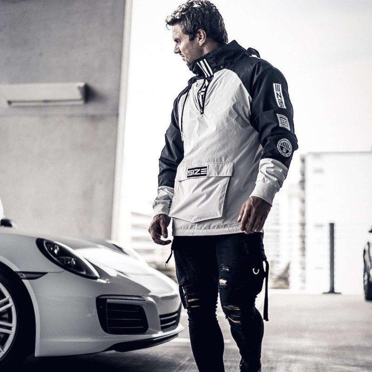 The jacket has USA, Canada, Mexico, South Korea, and UK flags patch on the right upper arm sleeve and Size Up Logo stitched on the left upper arm sleeve.